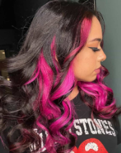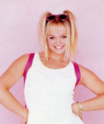 Este peinado hace referencia a una cantante de moda del grupo “Spice Girls”, con coletas altas en las laterales combinadas con trenzas en el flequillo y mechones de colores, optando por un estilo liso y elegante añadiendo ondas.