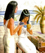A pesar de llevar pelucas, los antiguos egipcios disimulaban las canas usando normalmente tinte, el más usado era la henna, color negro, o alheña, color rojizo.